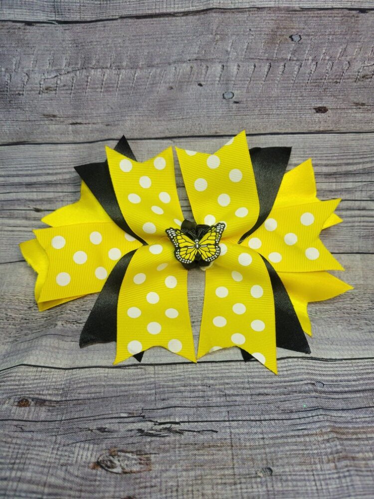 / Butterfly Black & Yellow Pokey Dot Burst Bow
